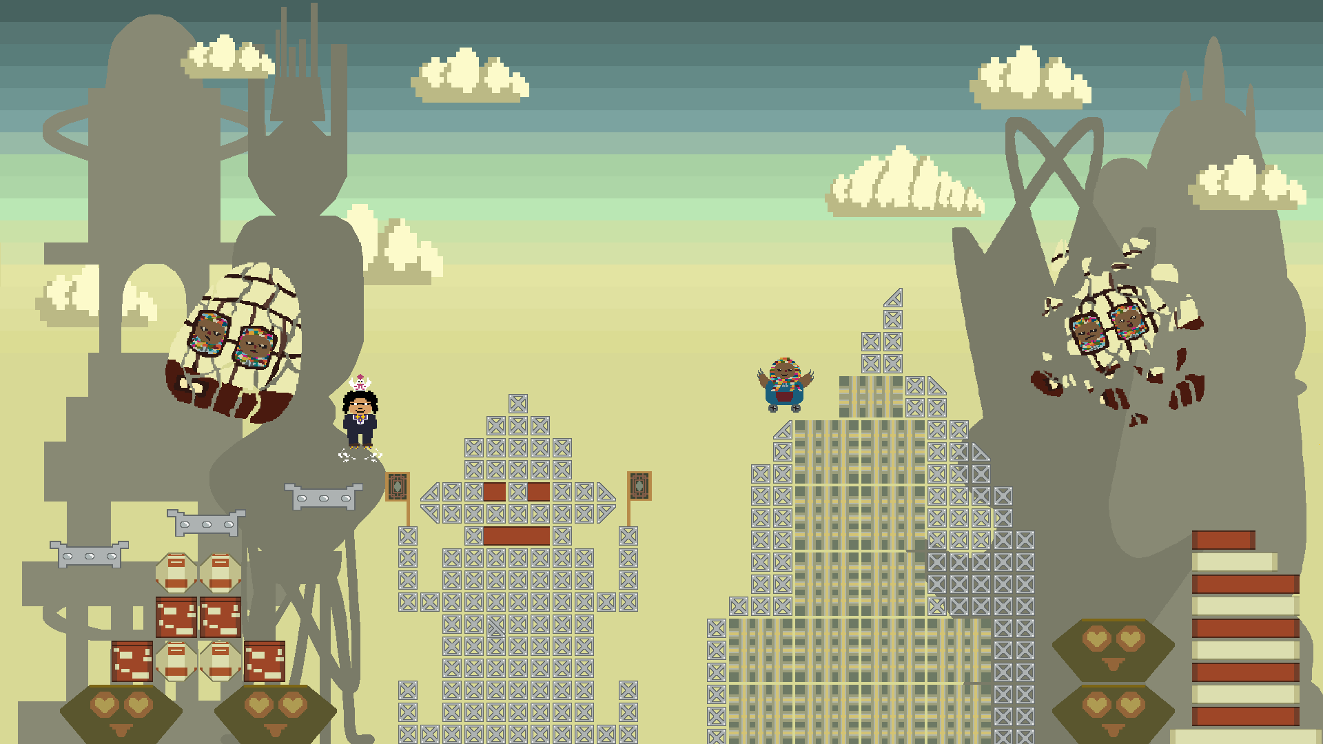 Procedurally removes physical collision and visual tiles from the level map to create empty gaps that Benoit and Gonji may fall into.